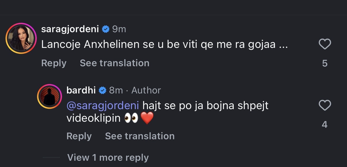 Ky koment tregon padurimin e Sarës dhe lë të kuptohet se kënga është shumë e veçantë dhe e dëshiruar prej saj, duke shtuar një notë personale dhe romantike në njoftimin e karrierës së Bardhit.