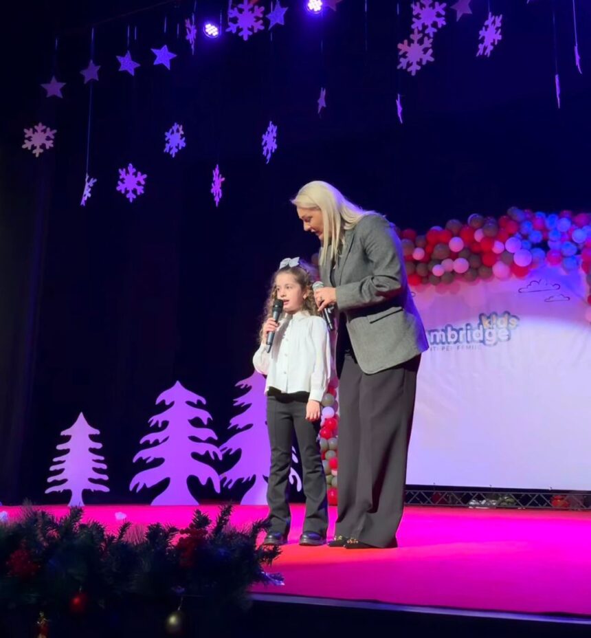 Ajo ka performuar në skenën e shkollës, bashkë me mbesën e saj Emën, në kuadër të programit festiv të fundvitit.