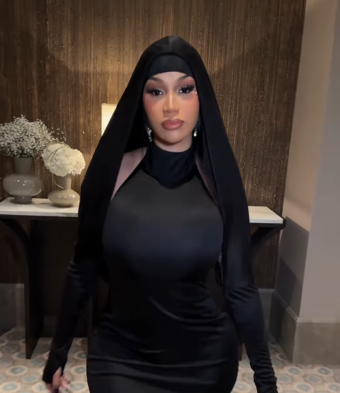 Në disa video që u bënë virale në Instagram dhe TikTok, Cardi B u pa e veshur me një fustan të gjatë të zi dhe me shami në kokë (hixhab), ndërsa bënte shaka me ndjekësit e saj duke e quajtur veten “Halal B”.