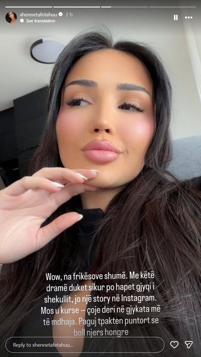 Përmes një postimi në Instastory, ajo shkroi se e gjithë kjo situatë po ngjan me “gjyqin e shekullit”, duke e ftuar atë të mos kursehet dhe t’i drejtohet gjykatave më të mëdha. Megjithatë, Xheneta nuk e la me kaq, duke e goditur me një akuzë tjetër teksa i kërkoi që të paktën të paguajë punëtorët e tij, pasi “boll djersë ka ngrënë”.