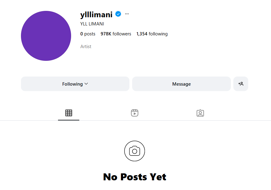 Limani ka fshirë të gjitha postimet e tij në Instagram, duke lënë profilin krejtësisht bosh, me përjashtim të një fotoje profili që tani është një rreth i thjeshtë në ngjyrë vjollcë misterioze.